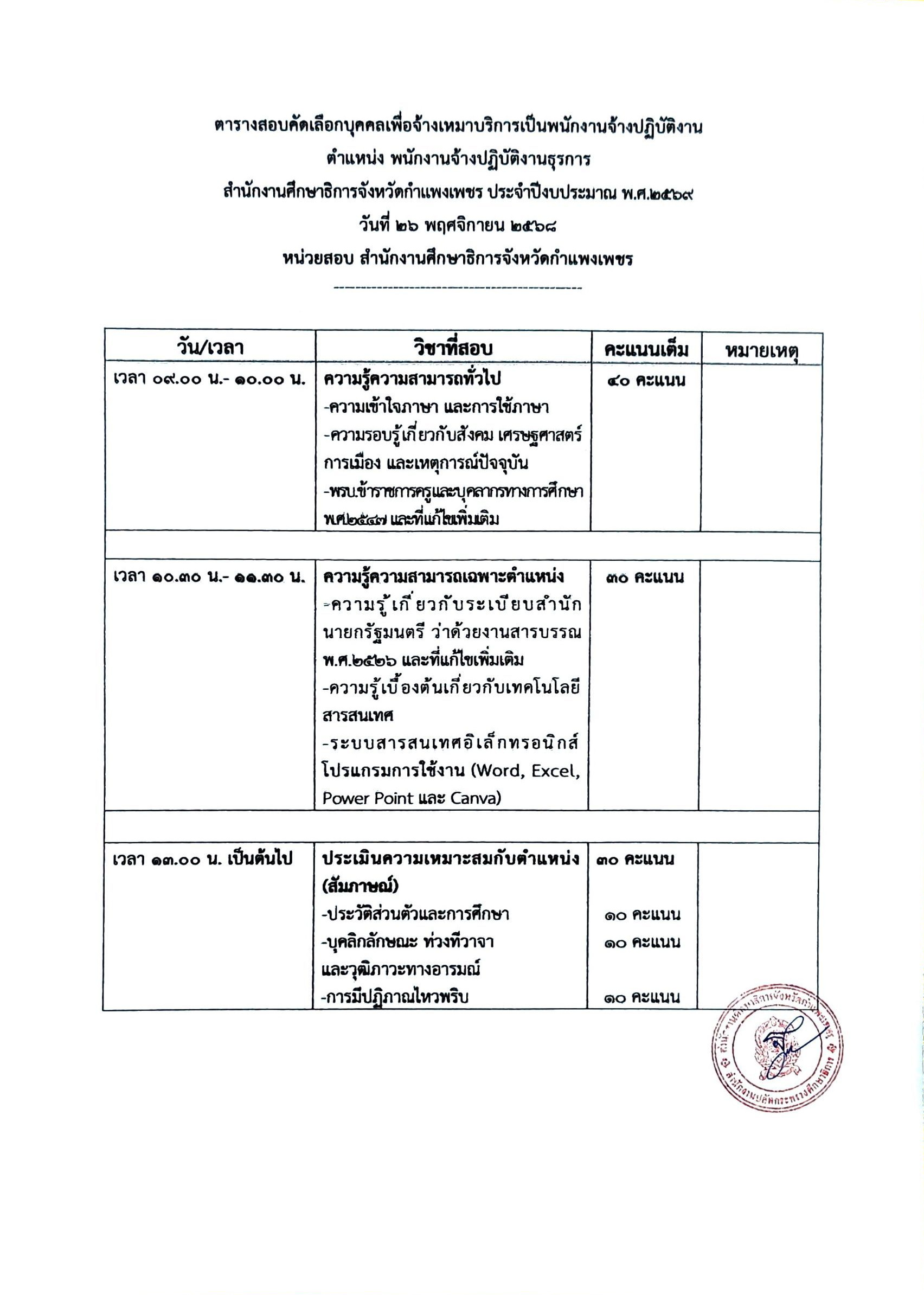 ค่าตอบแทนเดือนละ 11,000 บาท ผู้ใดประสงค์สมัครฯ ยื่นใบสมัครด้วยตนเอง ณ สำนักงานศึกษาธิการจังหวัดกำแพงเพชร