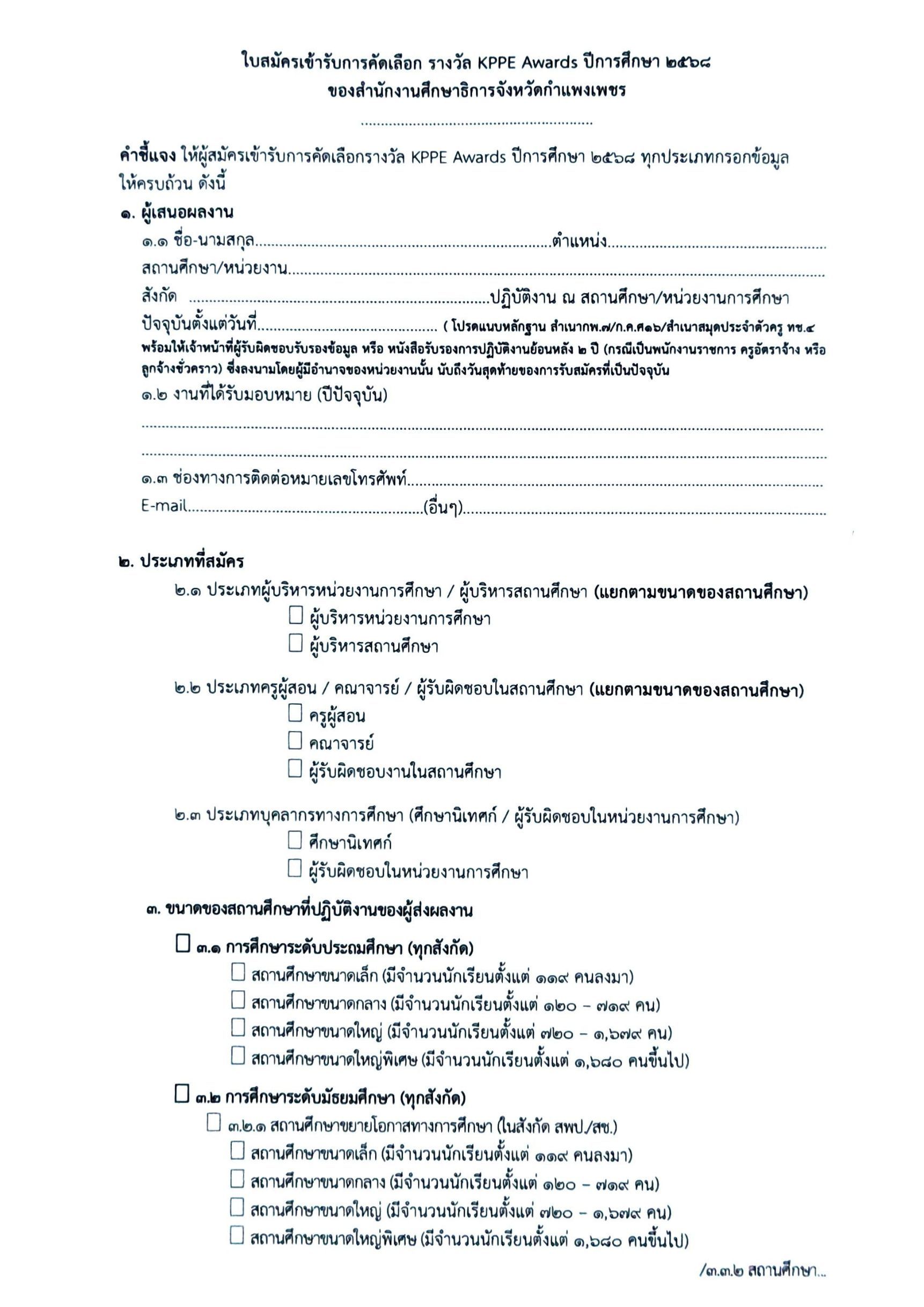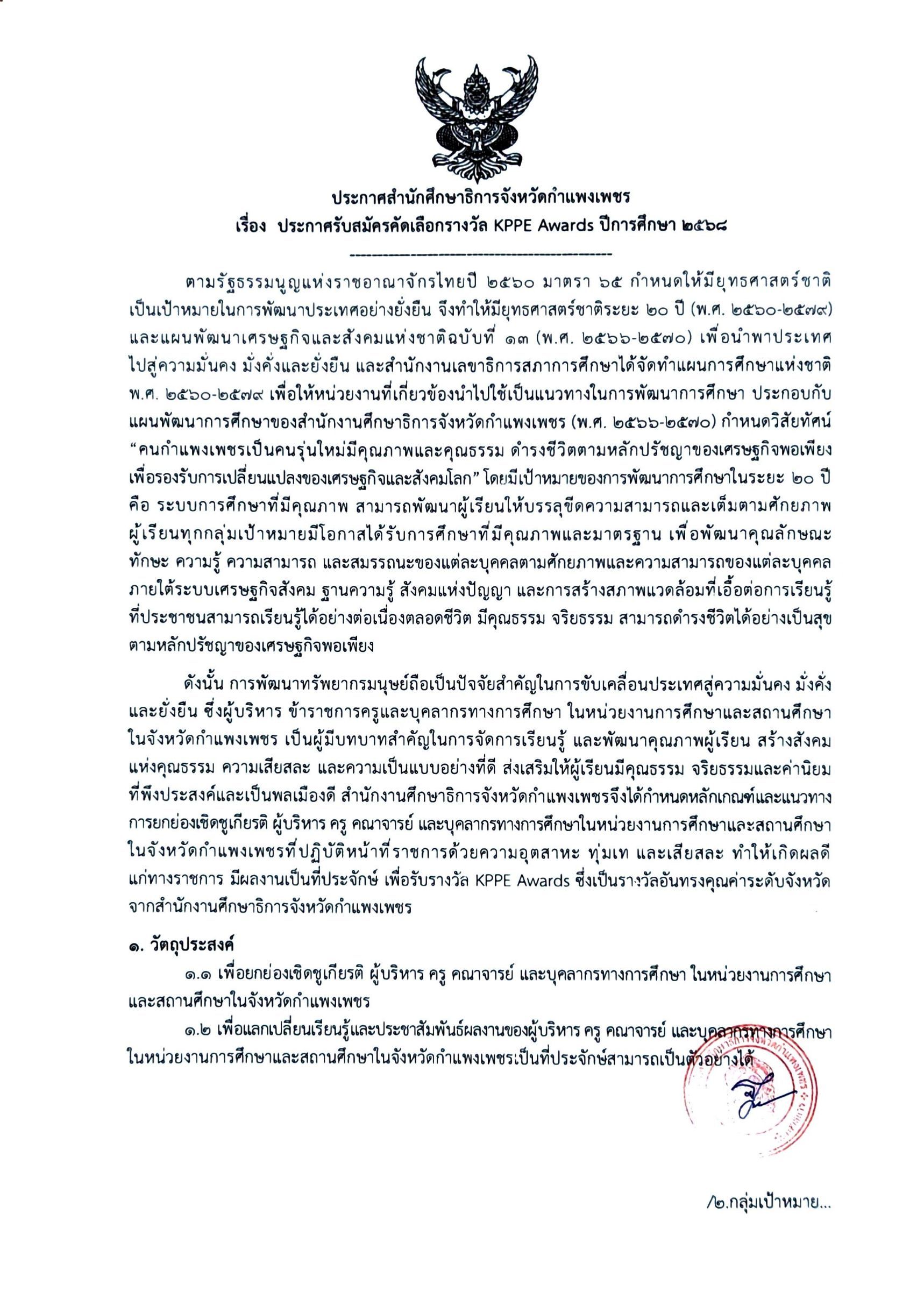ประกาศรับสมัครคัดเลือกรางวัล KPPE Awards ปีการศึกษา 2568